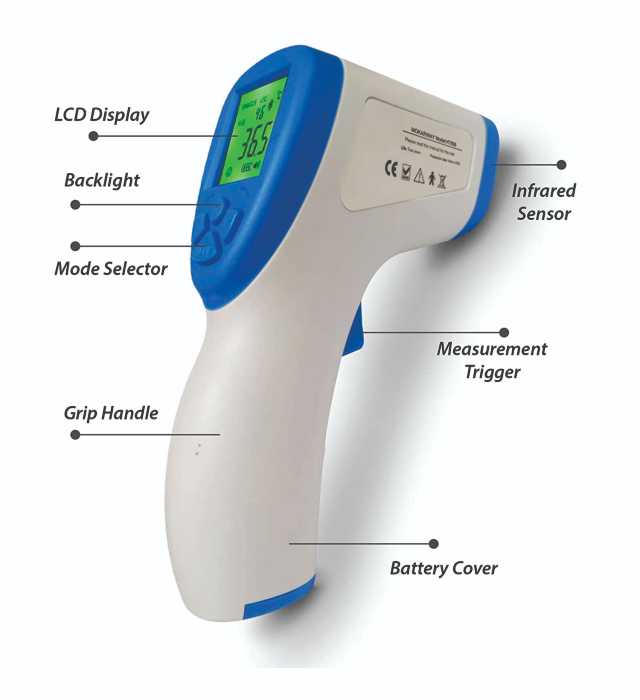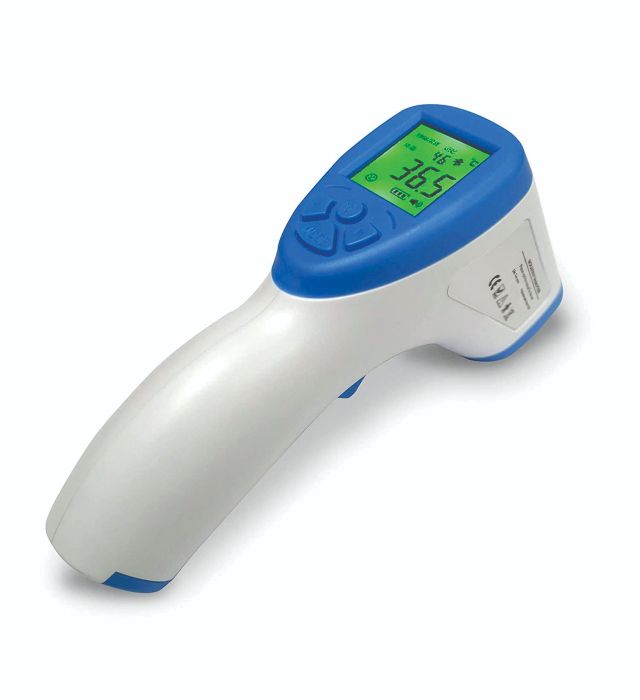 Simply point at the forehead, press the trigger, and instantly read the temperature on the clear display.