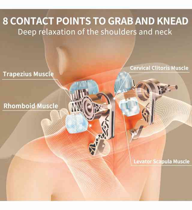 The six upper acupressure points knead shoulders and neck, while the two lower acupressure points press the neck and back. With wider silicone massage heads, the massage area is increased by 20%, covering a larger area of the painful areas and relaxing the entire shoulder and neck area as well as the back. This ensures a more comfortable body feeling.